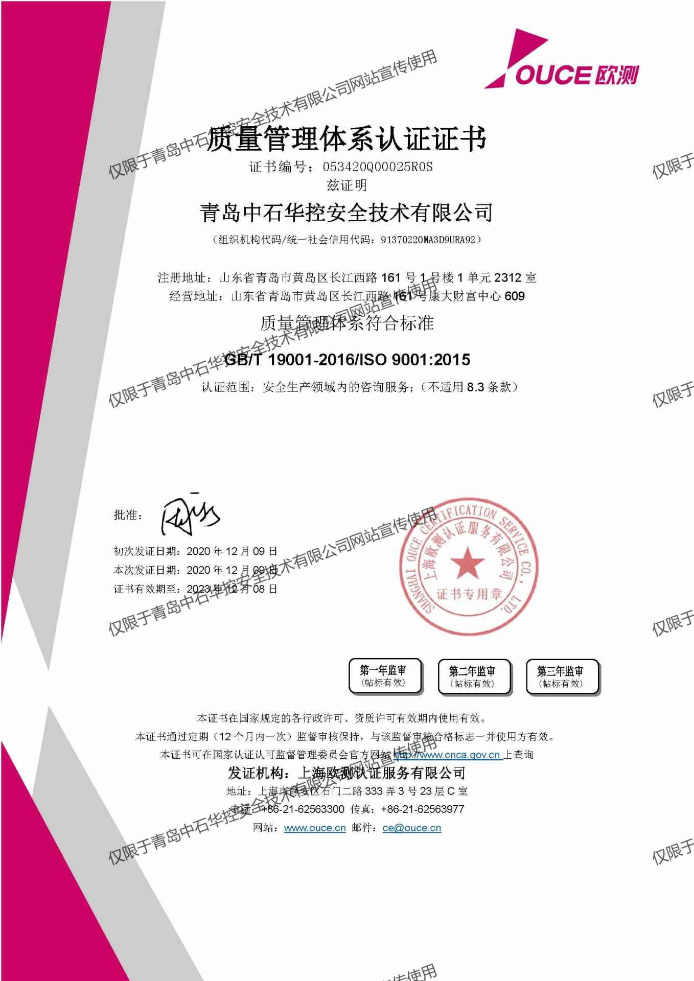 2020年体系证书